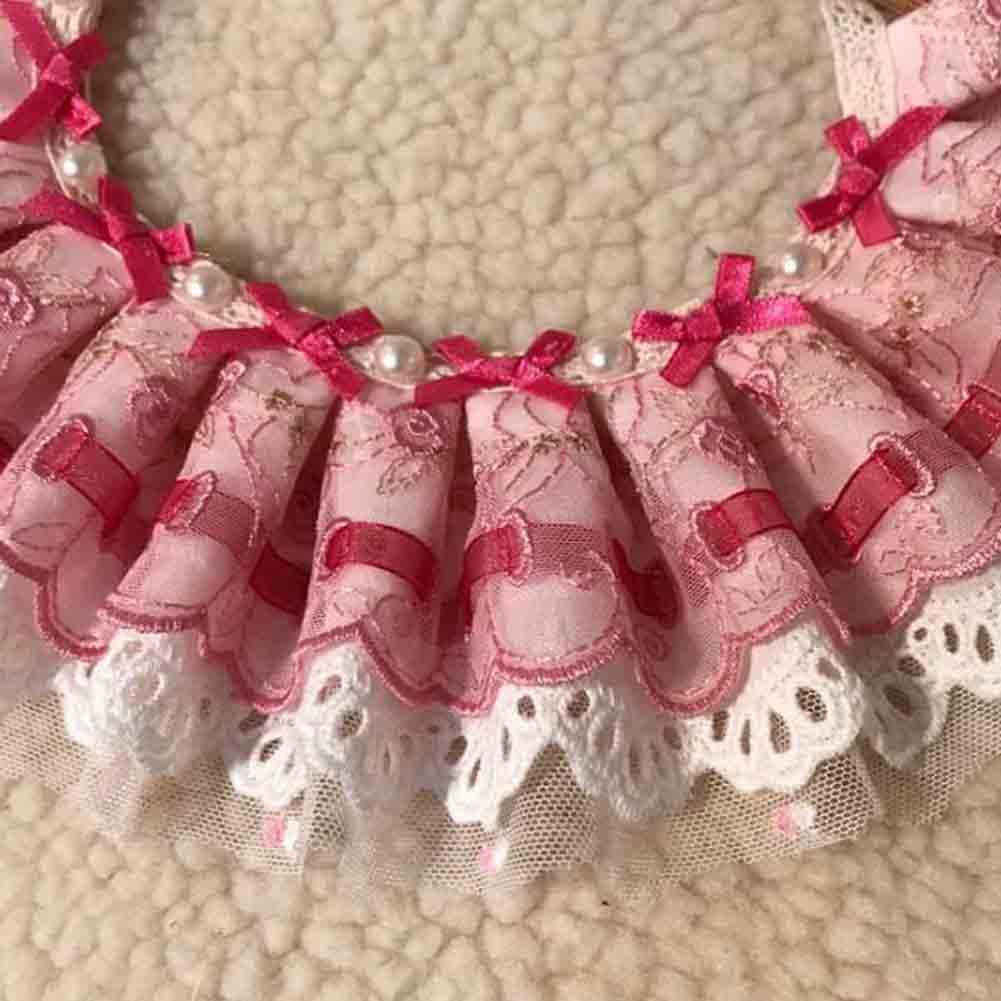 Retro Pink Lace Collars European Style Beads Handmade Cat/Dog Necklace 8.2-11.2" Retro Pink Lace Collars European Style Beads Handmade Cat/Dog Necklace 8.2-11.2"