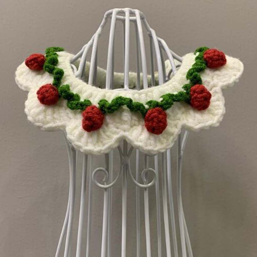 White Strawberry Pet Knitted Collar Handmade Crochet Necktie Collar Cat Dog Necklace Pet Cute Scarf Bib