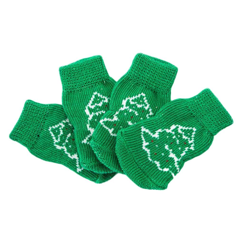 Home > 4 Pcs Green Christmas Tree Dog Knitted Pet Socks Cartoon Cute Puppy Cat Socks Dog Foot Covers Poodle Teddy Socks