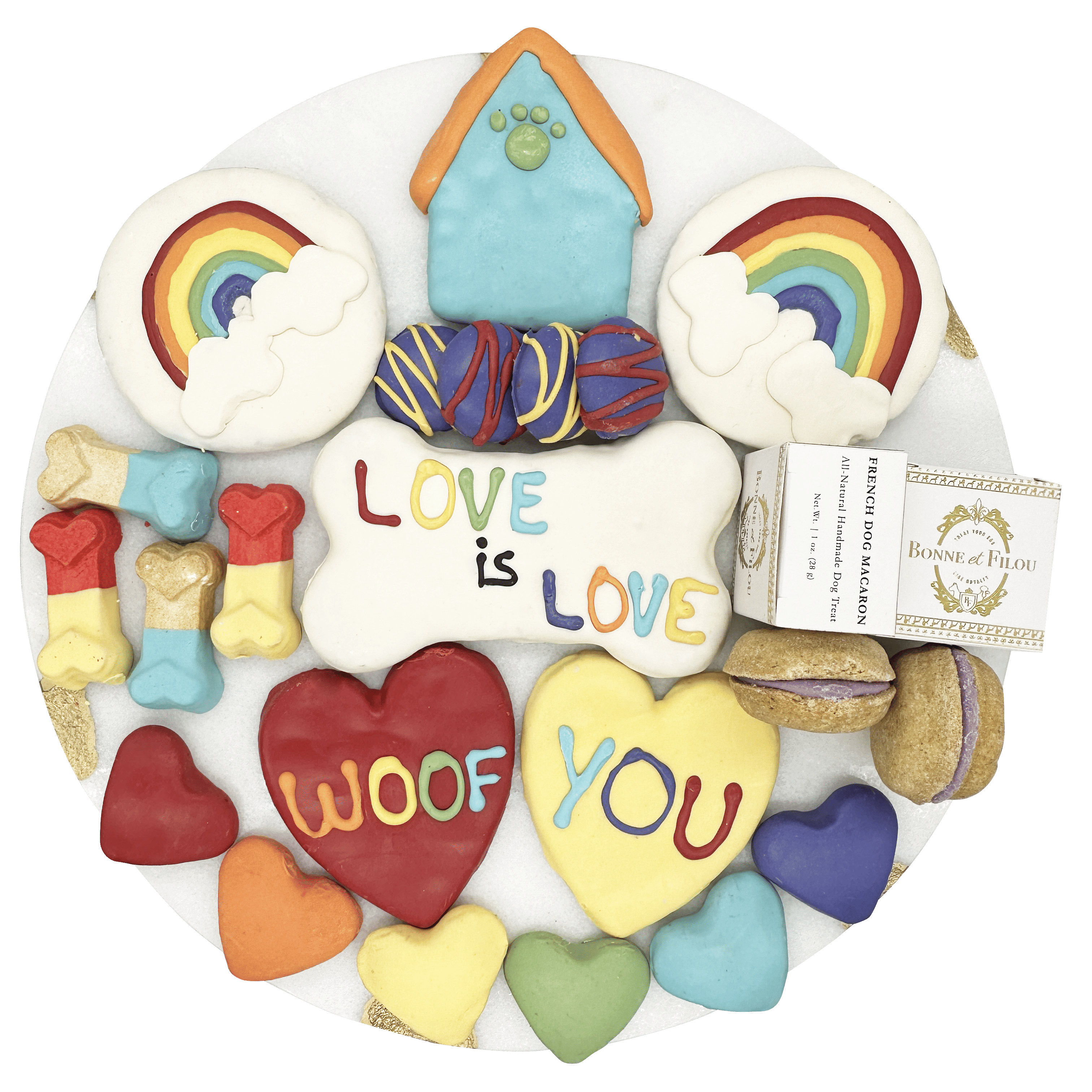 BARK to support individual rights and expression with our Pride Themed Dog treats Gift Box and enjoy 22 delicious dog treats decorated in a rainbow of colors to show your support for the LGBTQIA+ community!