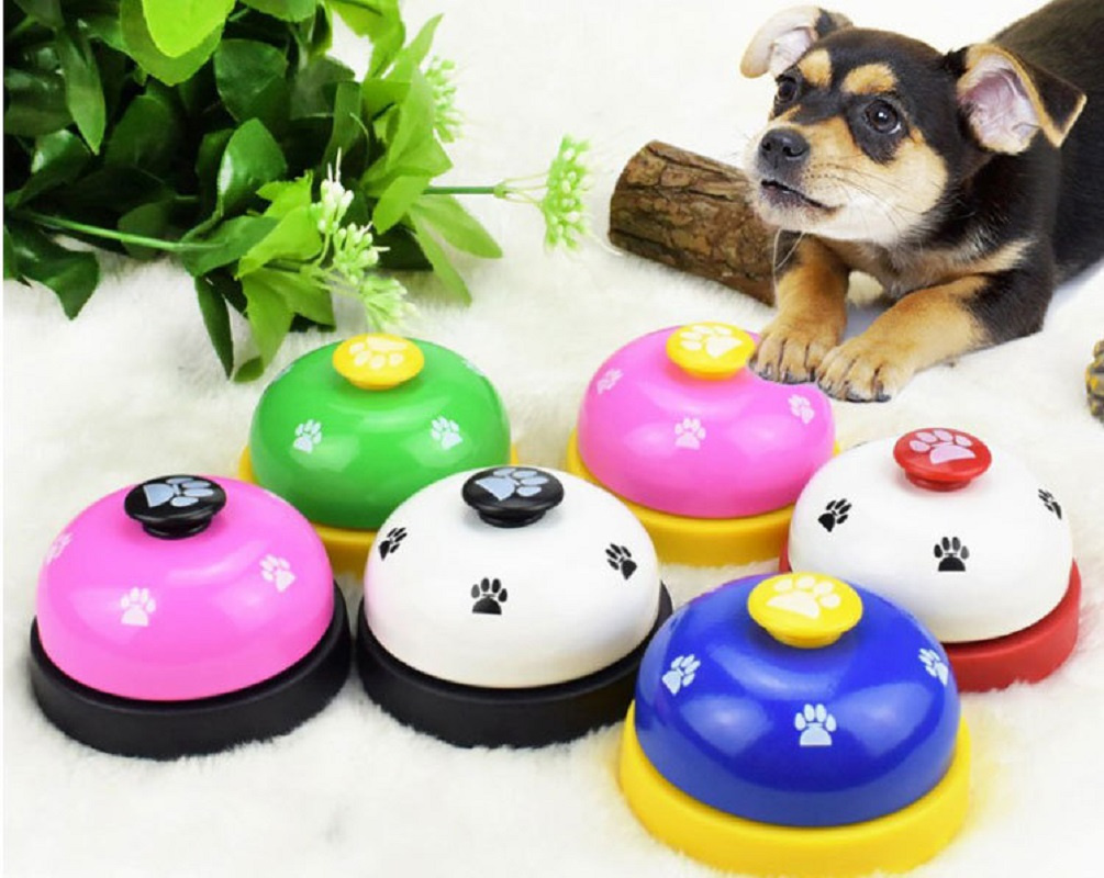 Easy to teach your puppy or kitten to hit the flat button with his paw or nose to ring.